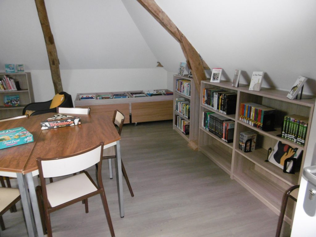 – 2ème étage : près de 2000 titres pour enfants à partir de 3 ans (livres et revues), couvrant à peu près tous les sujets, provenant pour la majeure partie de l’école de Ceaux.